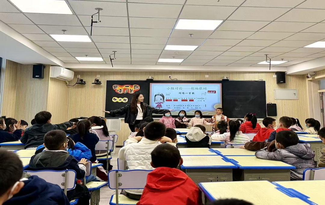 教师创新引入AI作为“班级虚拟学生”角色,在完成核心乐理与演唱技巧讲授后,AI系统即时分析课堂内容,以儿童化、趣味性的语言重新解读难点知识,如将节拍比喻为“鞭炮的节奏”,将音高变化形容为“年糕的蒸腾”,有效降低了学生的认识和学习。同时,AI虚拟学生能实时聆听学生演唱,提供可视化反馈与个性化改进建议。此外,AI还生成了多种民族风格的伴奏变奏,拓展了学生的音乐想象力,使传统教学与现代技术深度融合,提升了课堂的趣味性与实效性。