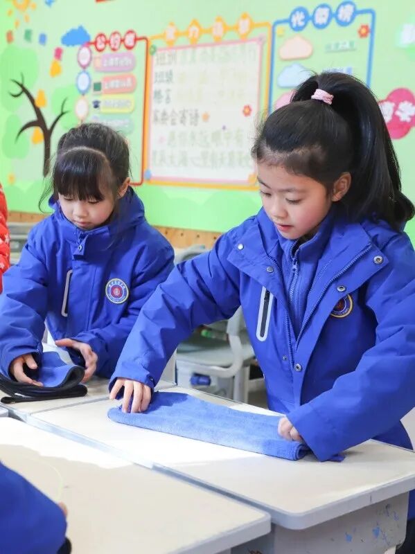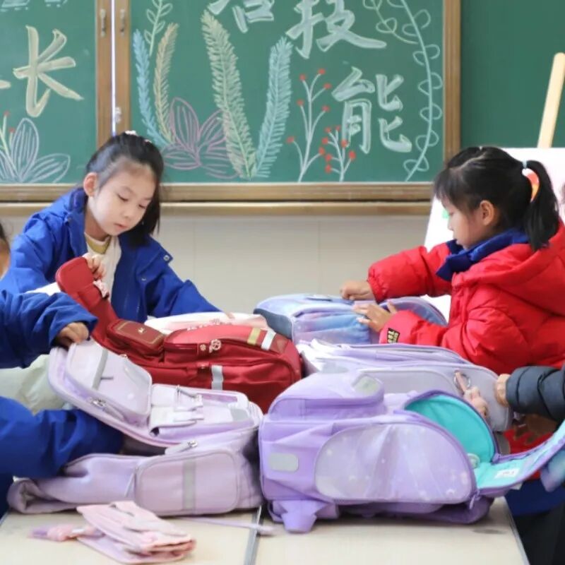生活技能现场聚焦整理书包与模拟叠被子。孩子们快速将课本、作业本分类归位,文具入盒,书包整洁有序;叠被子时认真铺平、对齐边角,叠出方正模样。让孩子在趣味实践中提升自理能力,收获成长与自信,尽显小达人风采!