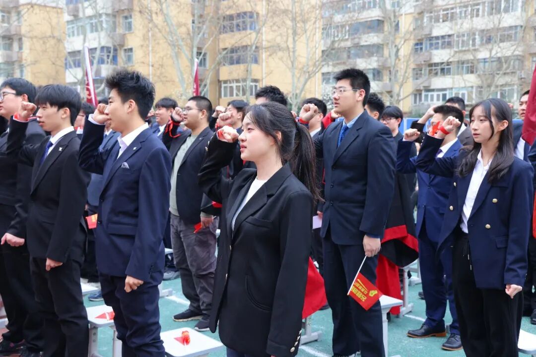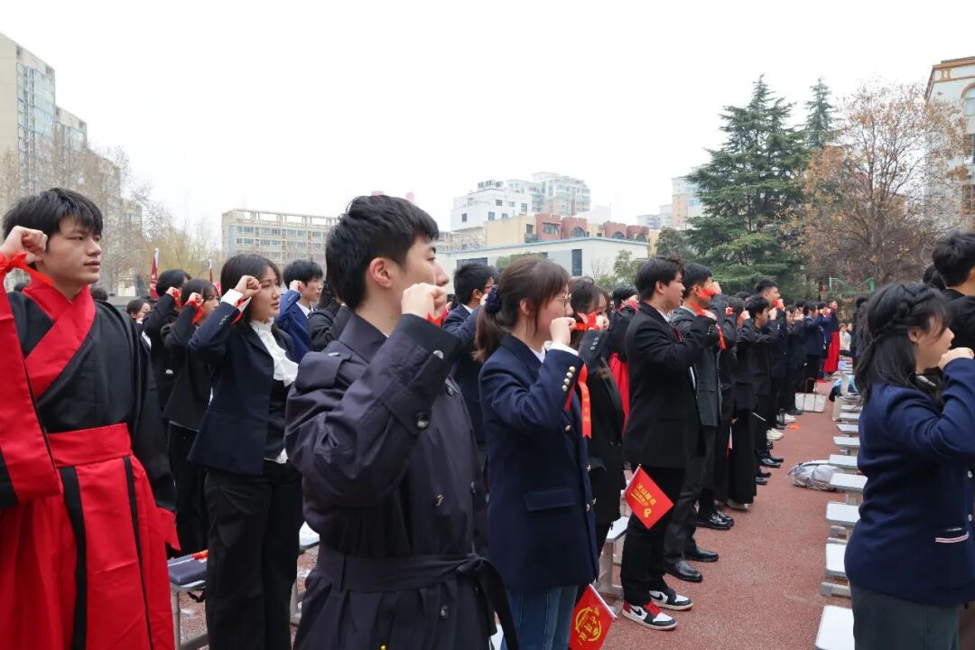 在他的带领下,全体学子高举右拳,面向未来庄严宣誓。那声震寰宇的誓言,汇聚成一股磅礴的力量,穿透云霄,在天地间久久回响,定格成青春最坚定昂扬的模样。