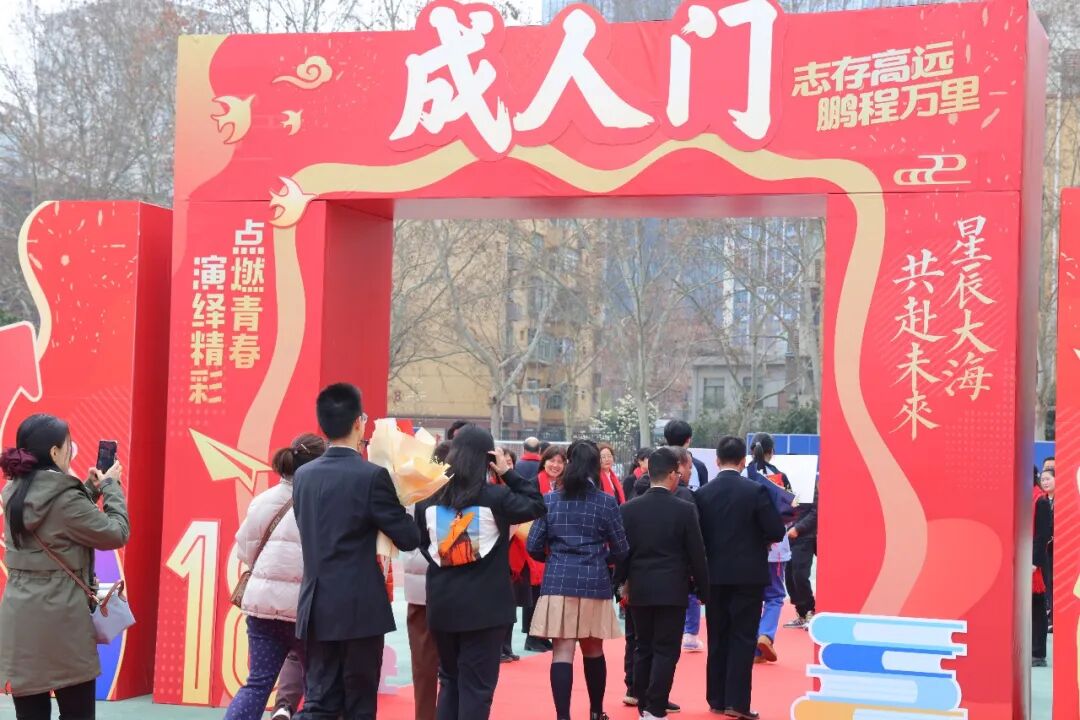 牵手父母,并肩同行。学子们昂首阔步走过成人门,一步跨过少年稚气,一步肩负使命担当。这道门,是告别懵懂的分界线,更是奔赴未来的新起点。