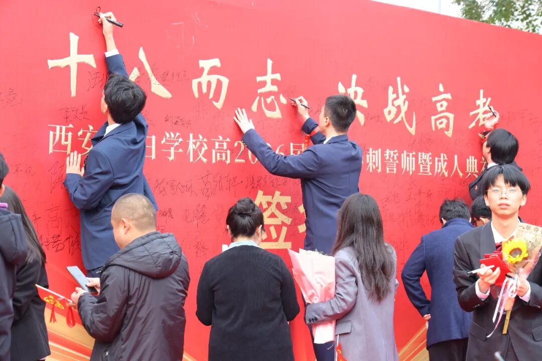 在跨越成人门之前,学子们郑重地在签名墙上落下名字,笔尖游走间,签下的不仅是姓名,更是一份对十八岁的庄严承诺。