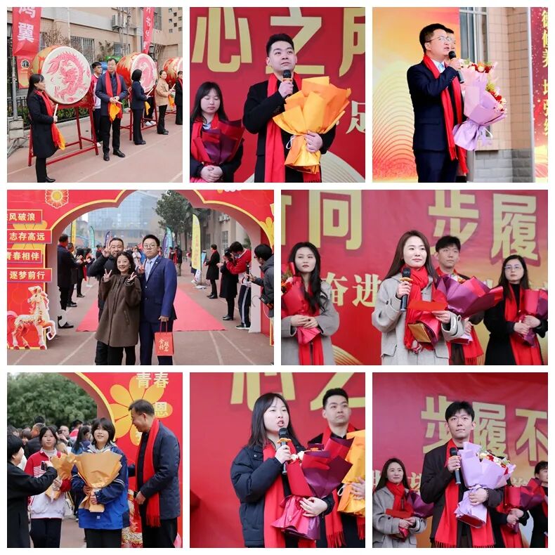 战旗猎猎,誓言砺剑。在全场期待的目光中,校领导为高三年级及各班授予高考战旗。一面面鲜红的战旗迎风舒展,象征着勇往直前的信念,承载着金榜题名的期待。随后,十位班主任依次登台,手捧鲜花,寄语声声,或温柔叮咛,或慷慨激昂,字字句句都是对学子的深情厚望。各班依次宣誓,口号震天,旌旗猎猎,少年意气,直冲云霄。最后,校领导、年级组、家长及学生代表分别为学子擂响“旗开得胜”“前程似锦”“众志成城”“金榜题名”的战鼓,隆隆鼓声,振奋人心。
