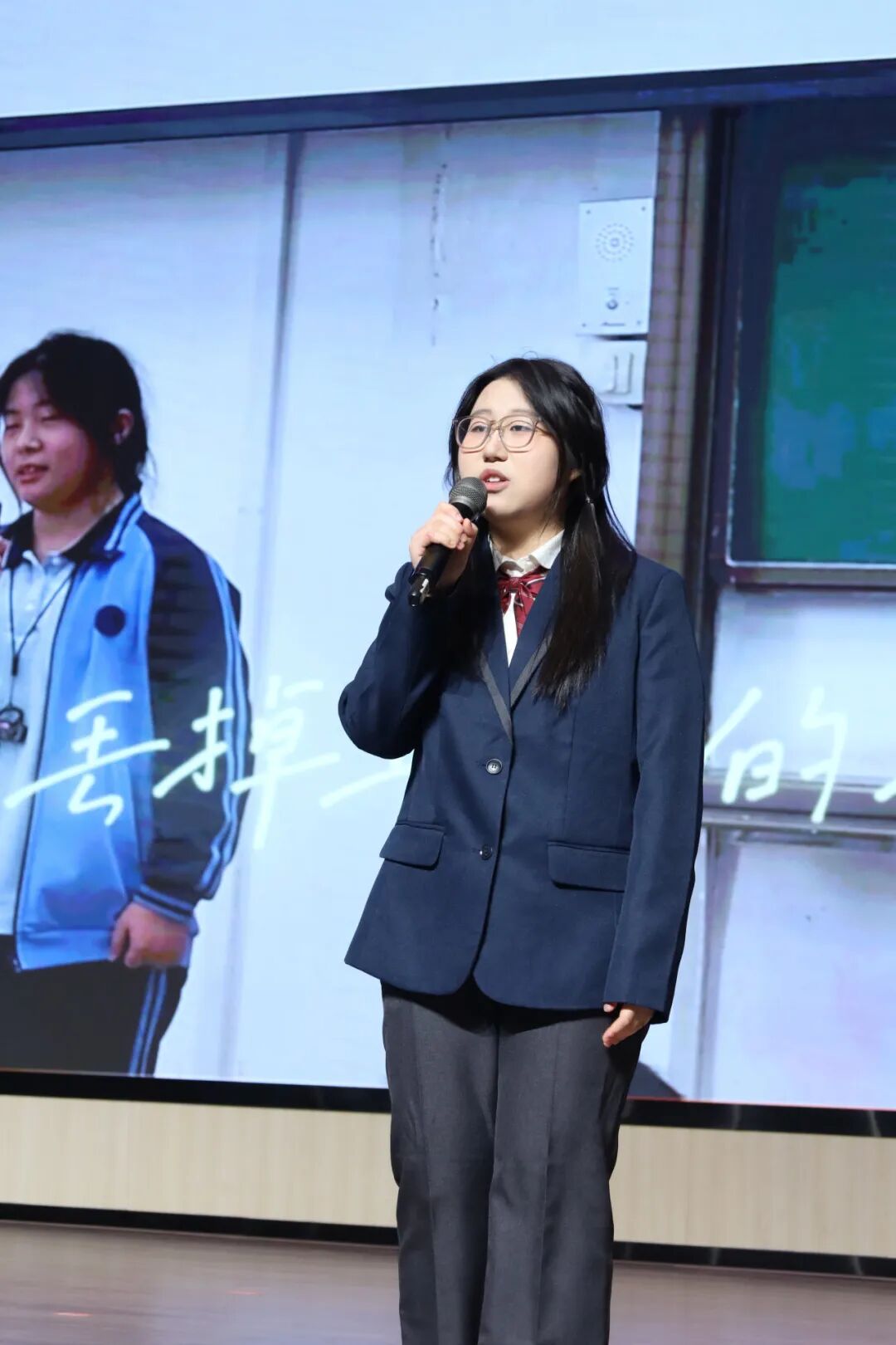 大屏幕上,同步播放着同学们这三年的校园时光,从高一入学时的青涩面孔,到运动会上的奋力冲刺,再到课堂上的专注神情……一帧帧画面掠过,承载着三年的欢笑与汗水,也见证着每一个人的成长与蜕变。
