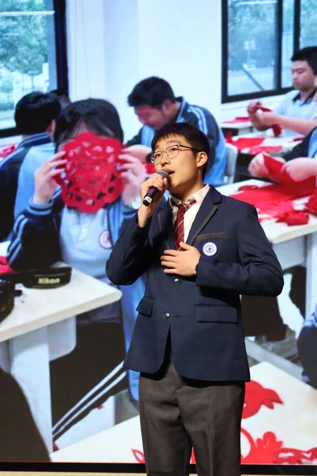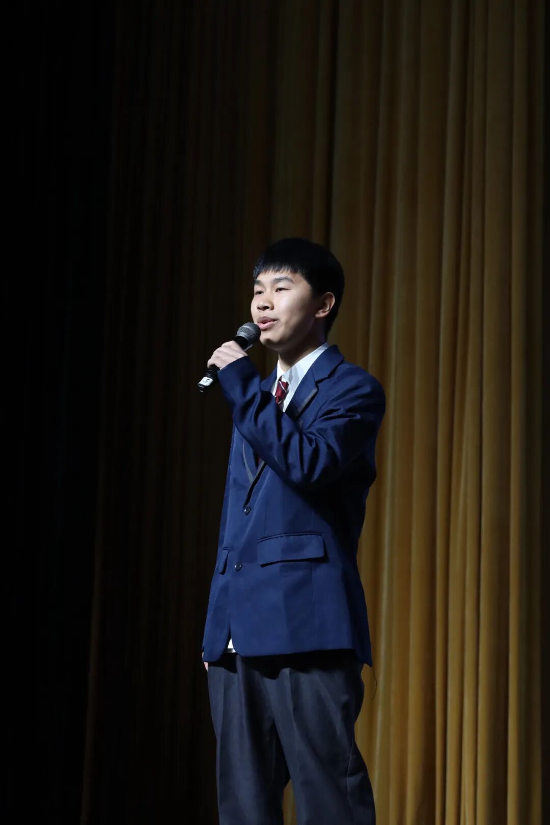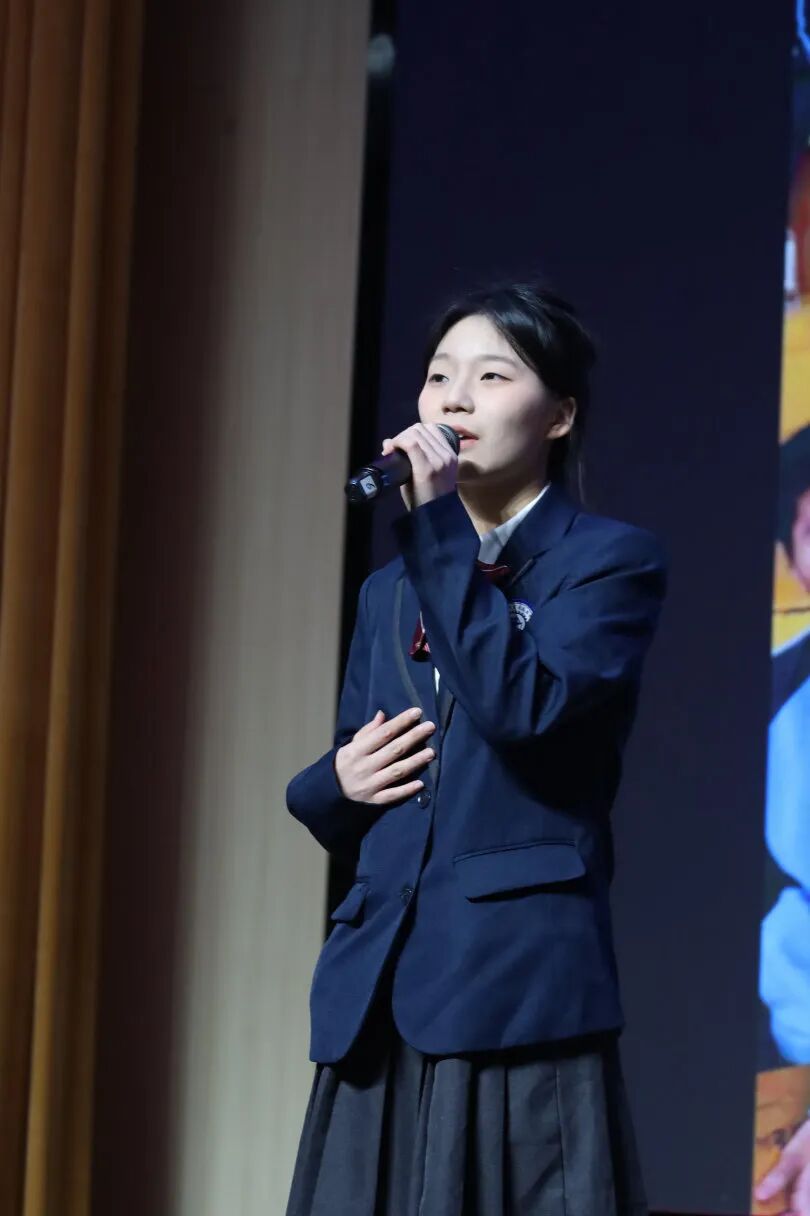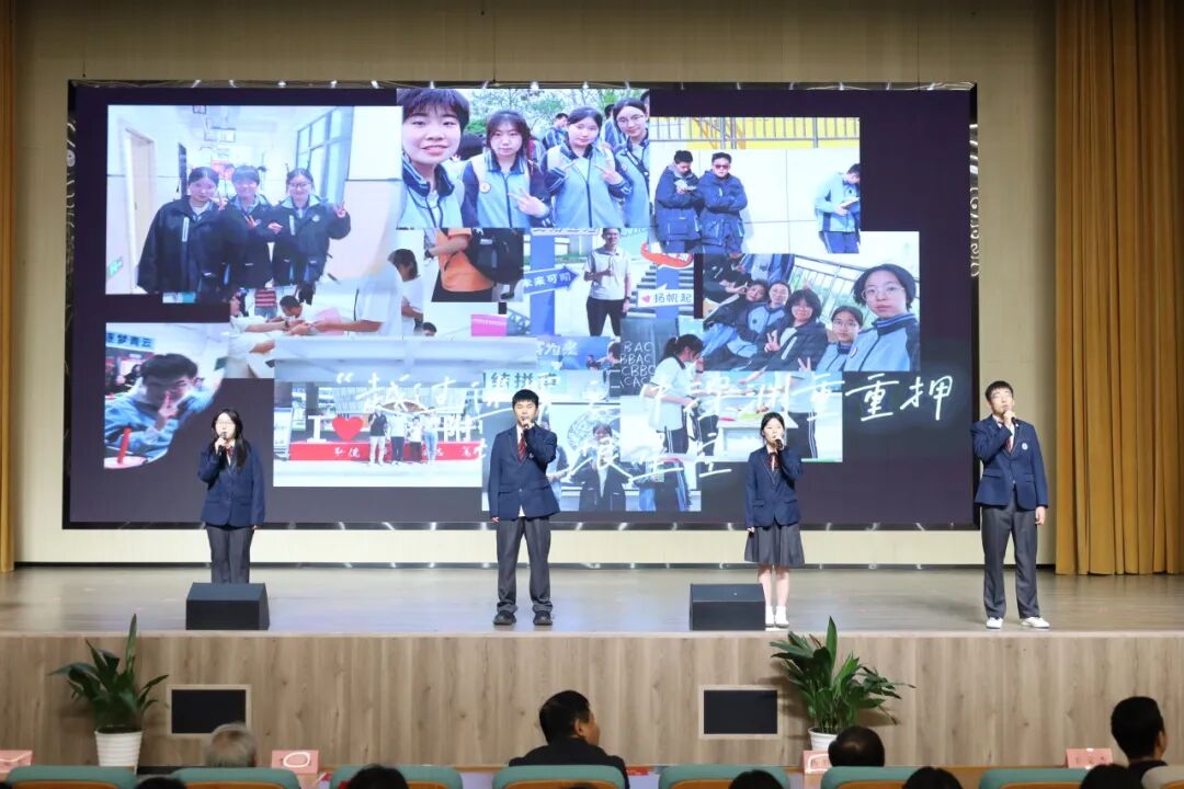 旋律响起,李熙贤、王柯羱、宋嘉怡、宋峻纬四位学生相继登台,他们手持话筒,以清澈而坚定的声音,唱响励志歌曲《逐空》。歌声里,有三年同窗的深情,有对未来的无限憧憬,更有誓要冲破云霄、逐梦长空的豪情壮志。