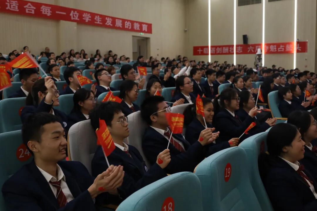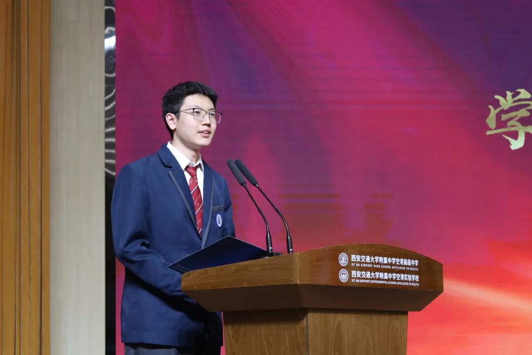 张世泽同学作为学生代表发言,他回顾了在交附空港从高一到高三快乐、充实的学习和生活历程。同时,面对仅剩的八十余天,向同学们分享了三句“心里话”:一是相信自己,不内耗、不放弃,拒绝空洞口号,踏实过好每一天;二是相信老师,将后背交给他们,并代表全体同学向辛勤陪伴、无私奉献的老师们致以诚挚感谢;三是相信时间,相信吃过的苦,高考虽不能定义人生,但却可以给自己争取更多选择的机会,剩下的日子足以改写结局。最后,他号召全体高三学子放下焦虑,稳住心态,同舟共济,奋楫笃行,在冲刺的号角中全力以赴,为梦想奋力一搏。