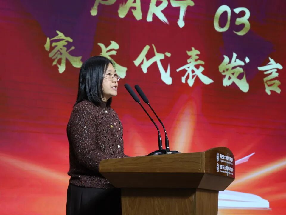 高2026届赵一诺同学的家长,陈亚琴女生作为家长代表发言,她深情回顾了孩子们三年来的成长与蜕变,并代表全体家长,向学校的悉心培育和老师们的辛勤付出致以最诚挚的感谢。面对冲刺阶段,她暖心寄语全体高三学子:不必纠结“行不行”,而要勇敢“拼一拼”;要紧跟老师步伐,相信专业引领;同时调整好心态,把健康放在第一位。她代表所有家长郑重承诺:做好后勤保障,用心陪伴、用爱支持,无论结果如何,家永远是温暖的港湾。最后,她为孩子们送上美好祝愿——愿在这个夏天,每一位学子都能收到心仪的录取通知书,走进理想的大学校门,圆梦六月,前程似锦。