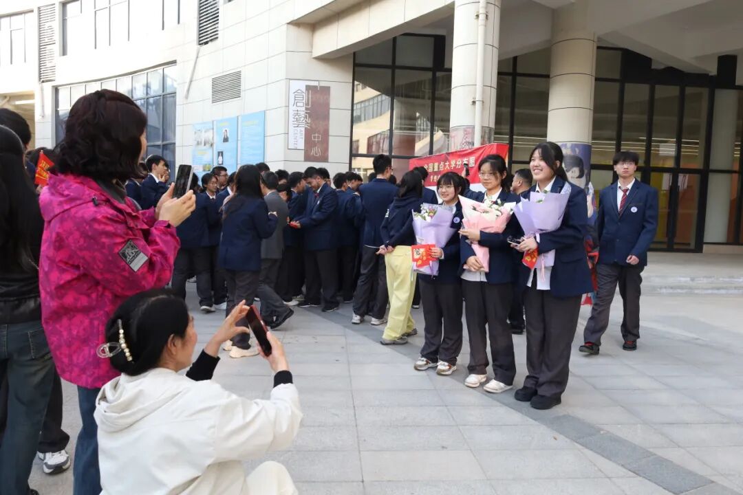 现场温情涌动,学子们自发与同学、老师、家长合影,一张张合影,记录下的是此刻的模样,更是此刻的心情:有紧张,有期待,但更多的是并肩作战的坚定与向梦想奔赴的勇气。