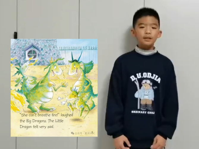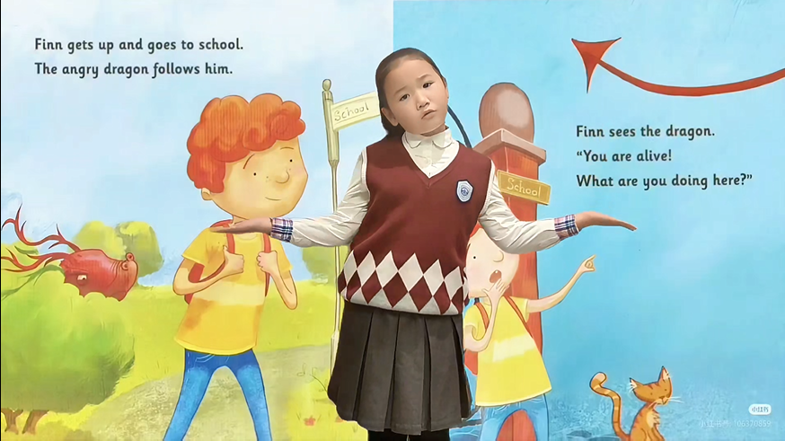 一、二年级的小朋友们用纯真清澈的嗓音,生动演绎了《Dinner for a Dragon》《What Are You Drawing?》等充满童趣的英语绘本。他们认真的朗读,仿佛把故事中的小龙和奇妙画笔带到了大家眼前。
