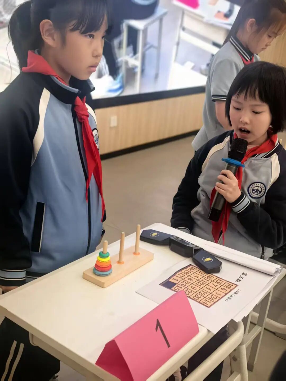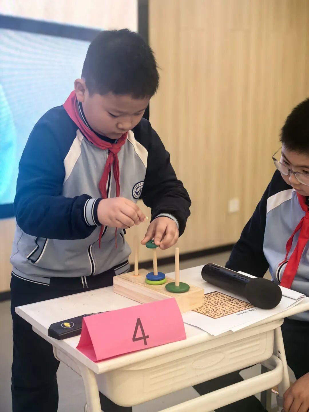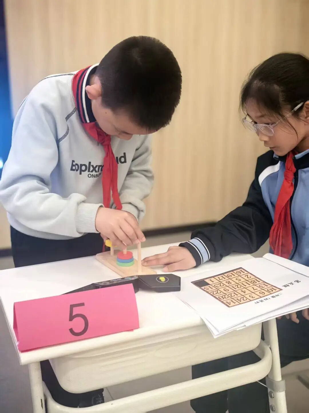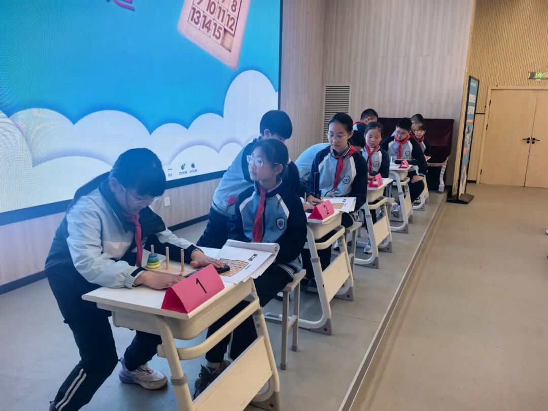 面对五层汉诺塔,选手们沉着冷静地移动圆盘。孩子们在反复尝试中领悟递归规律,锻炼了耐心与步骤规划能力,体会到了数学逻辑的严谨与趣味。