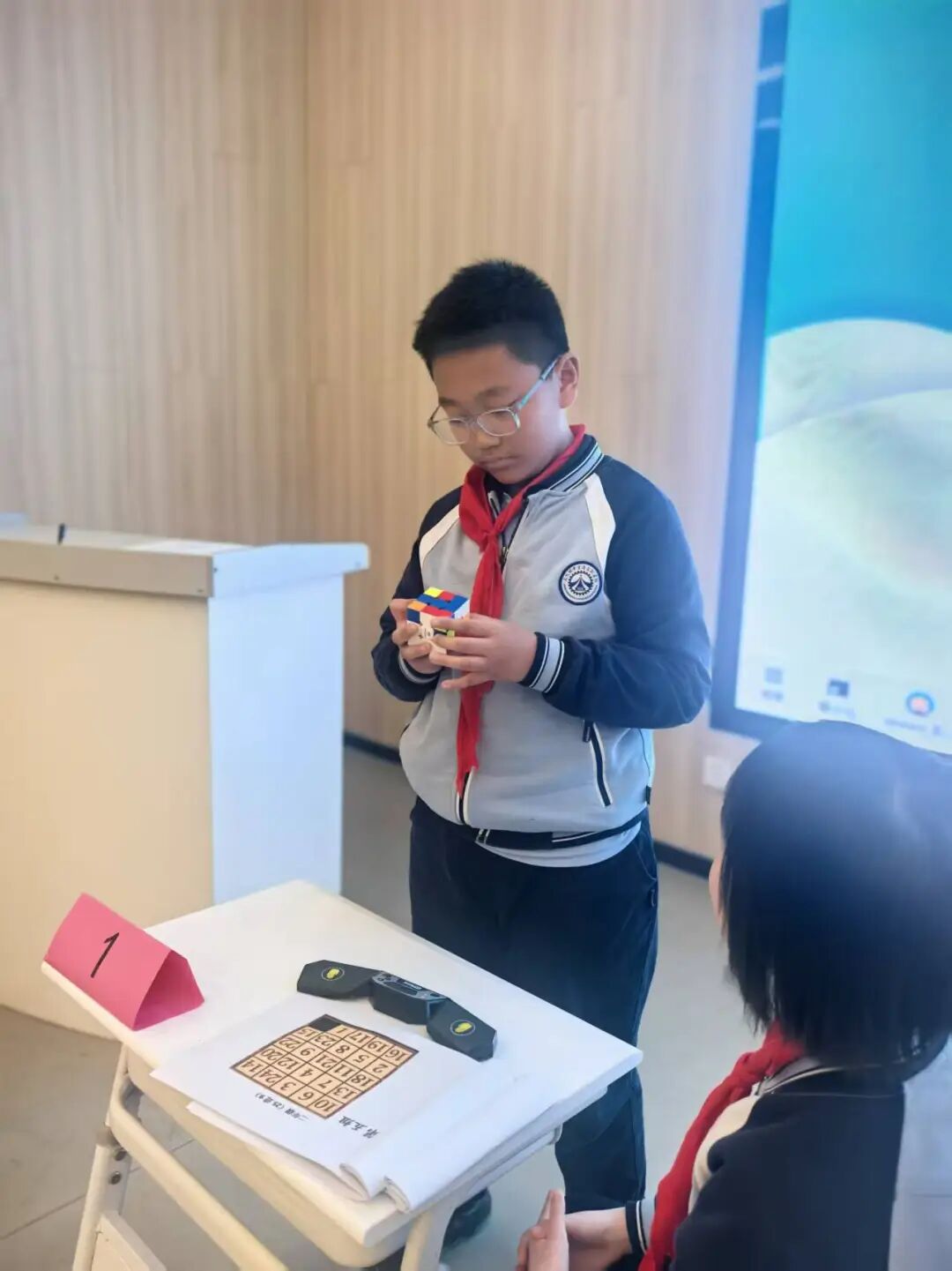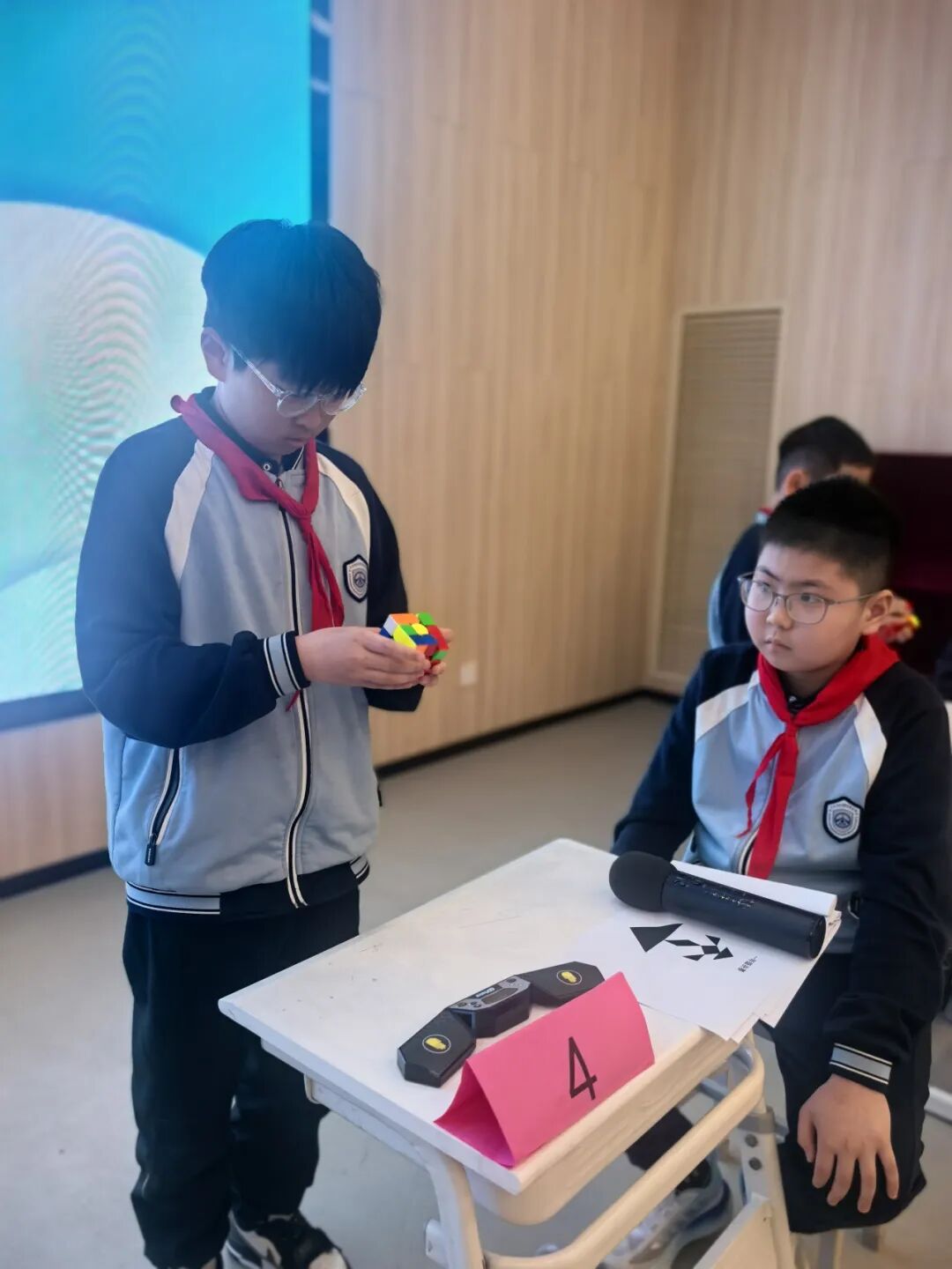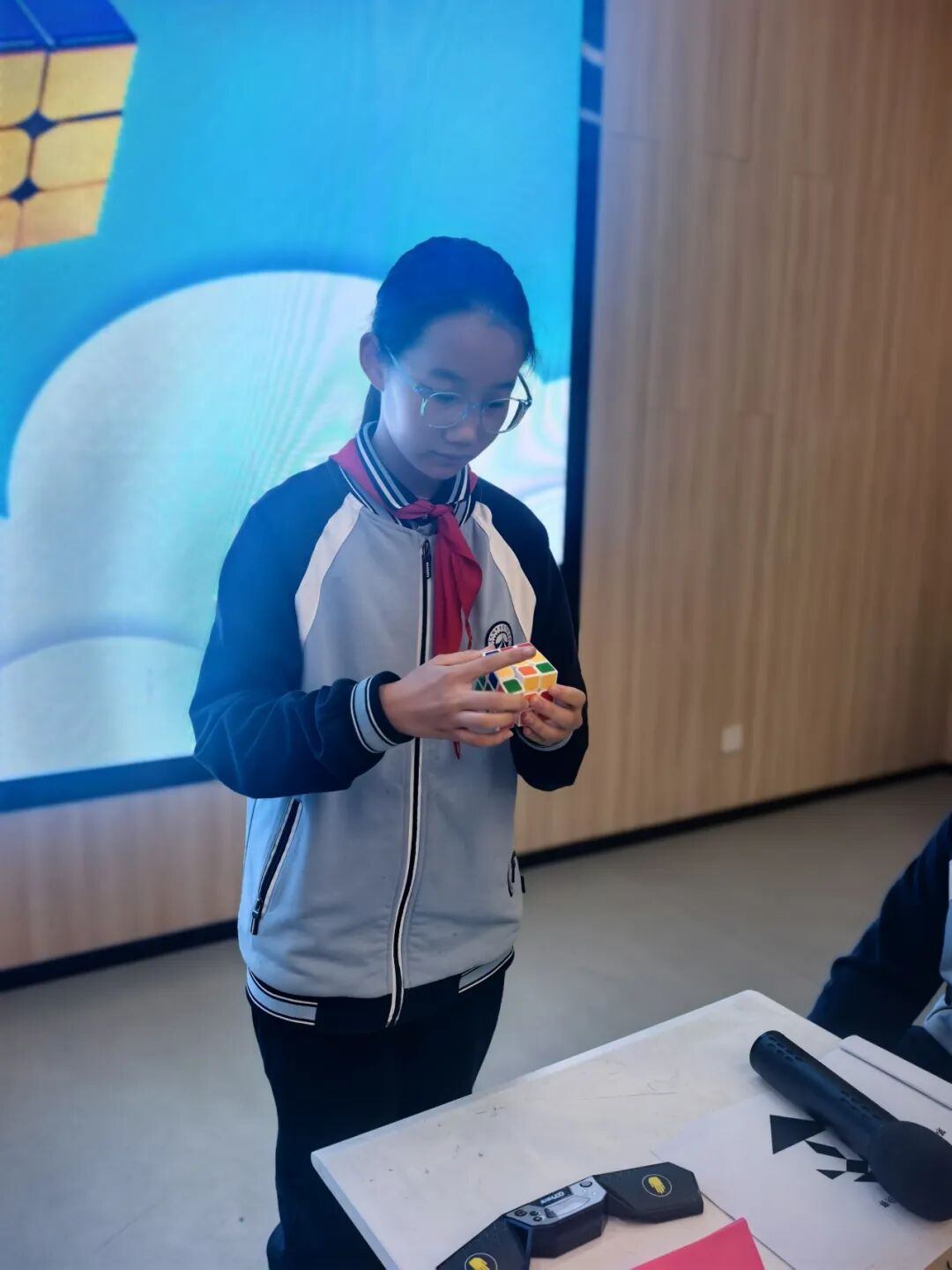 三阶魔方在指尖飞速旋转,选手们凝神观察、快速还原。这不仅是对空间想象与手脑协调的挑战,更是记忆力和反应速度的精彩对决。