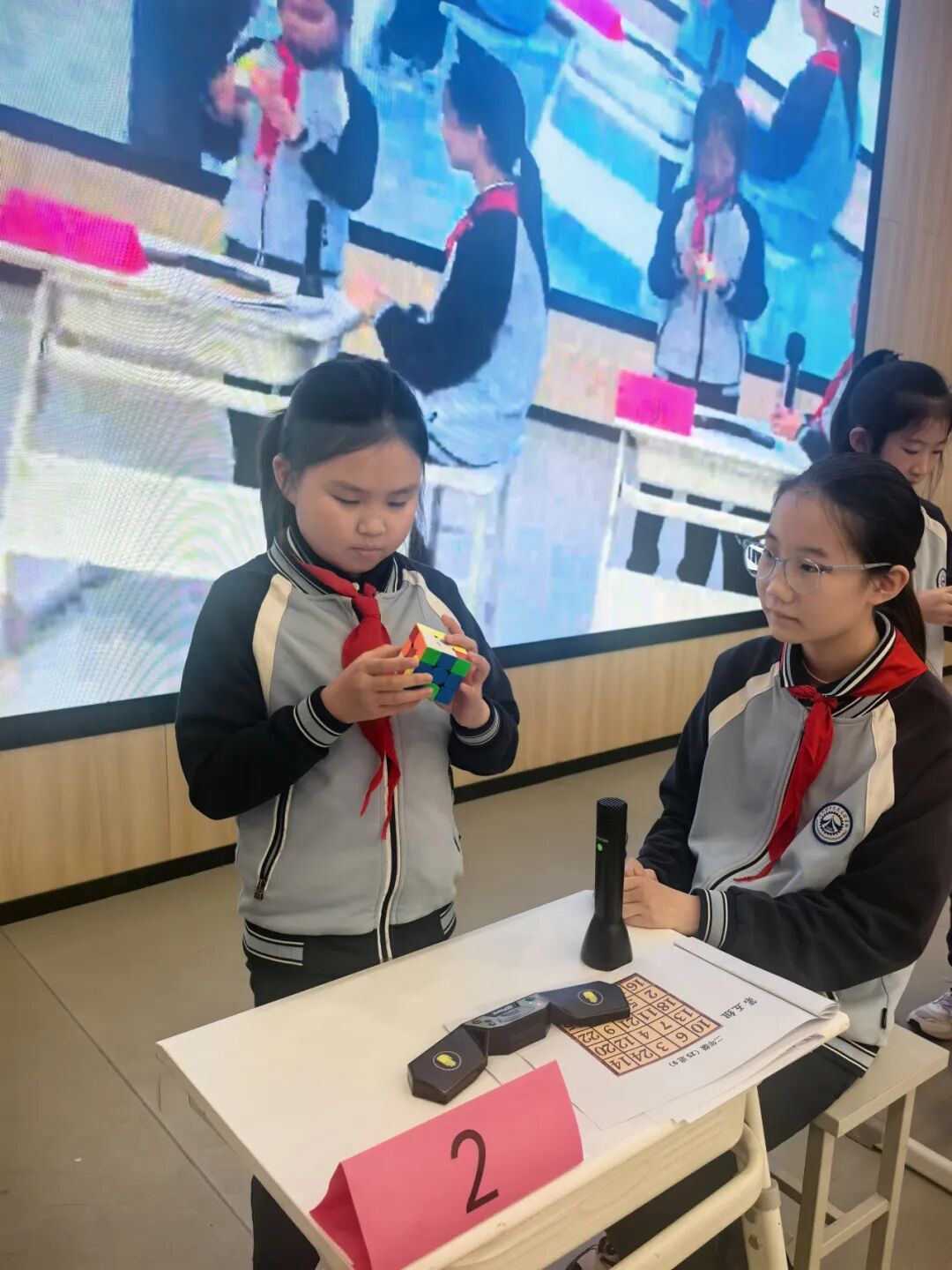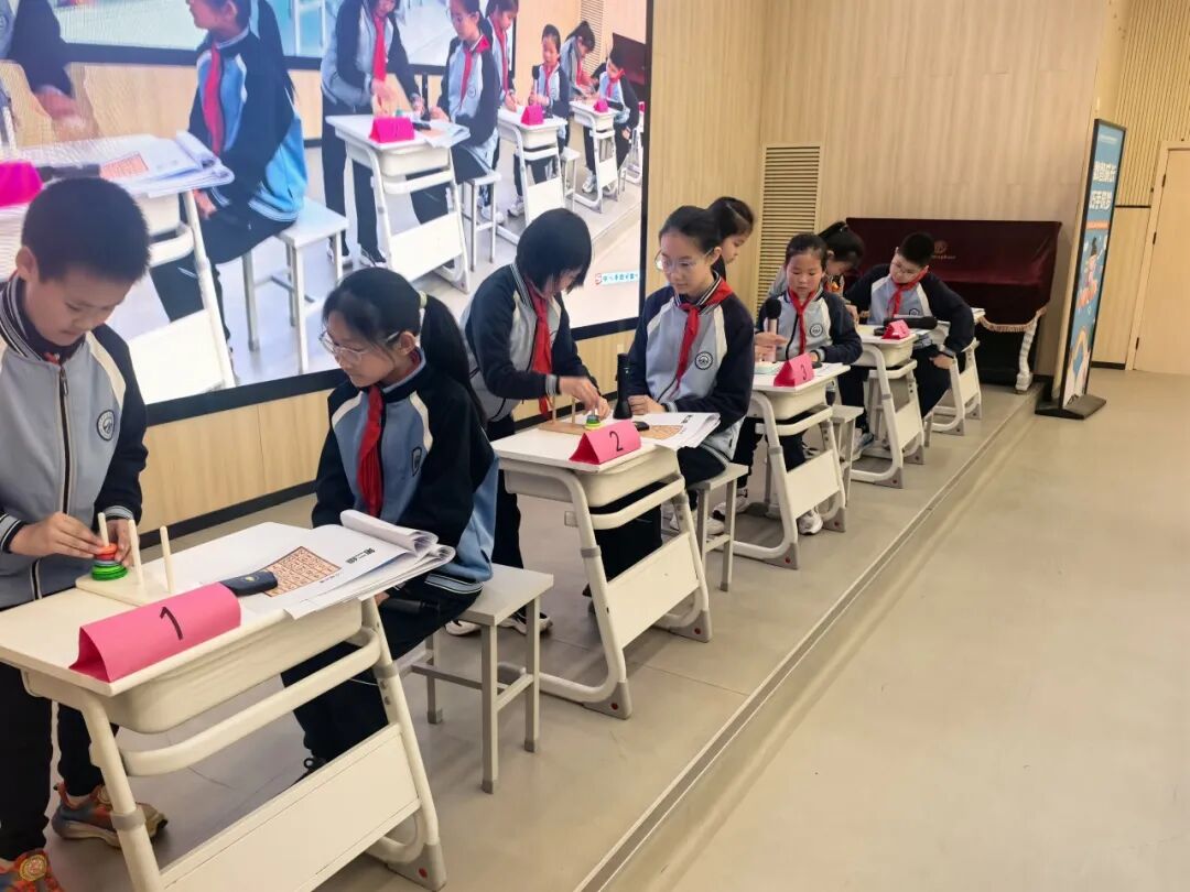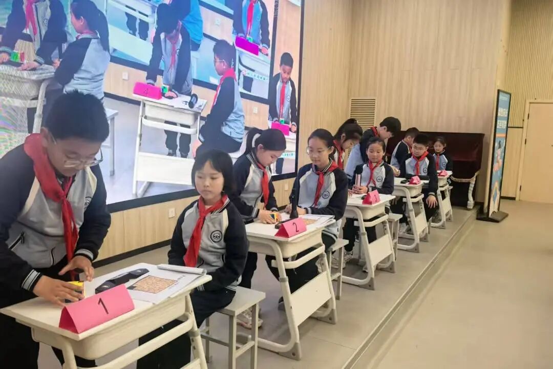 从七巧板的图形变幻,到华容道的数字有序;从汉诺塔的逻辑递归,到魔方的空间旋转——每一双巧手都在演绎数学的严谨与灵动,每一颗心灵都在触摸数智时代的思维脉搏。承百卅薪火,品数智风华,愿孩子们带着这份“玩”出来的数学精神,在未来的学习旅程中,继续以巧手探秘,让数智之光照亮更广阔的天地。